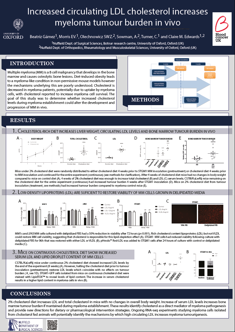 Increased circulating LDL cholesterol increases myeloma tumour burden in vivo